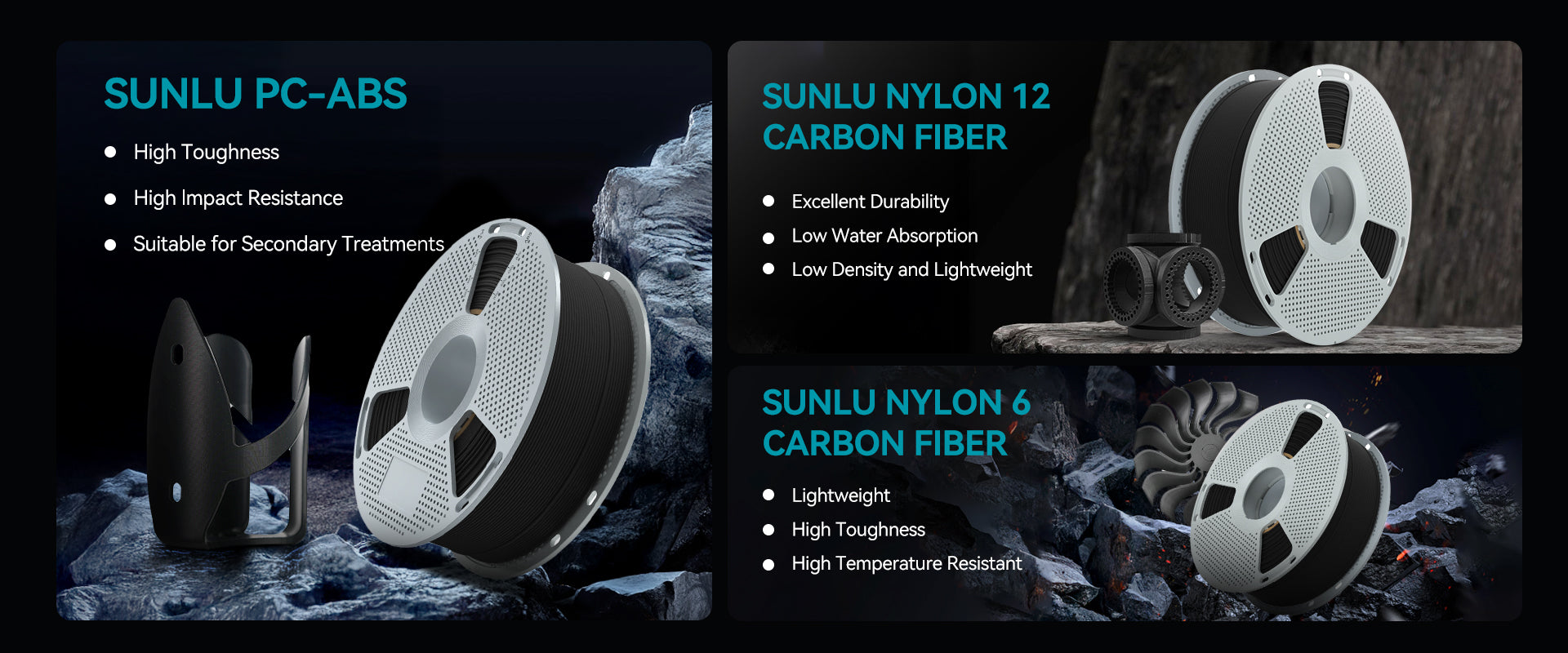 SUNLU PC-ABS filament is quite budget-friendly compared to some carbon fiber-filled stuff.