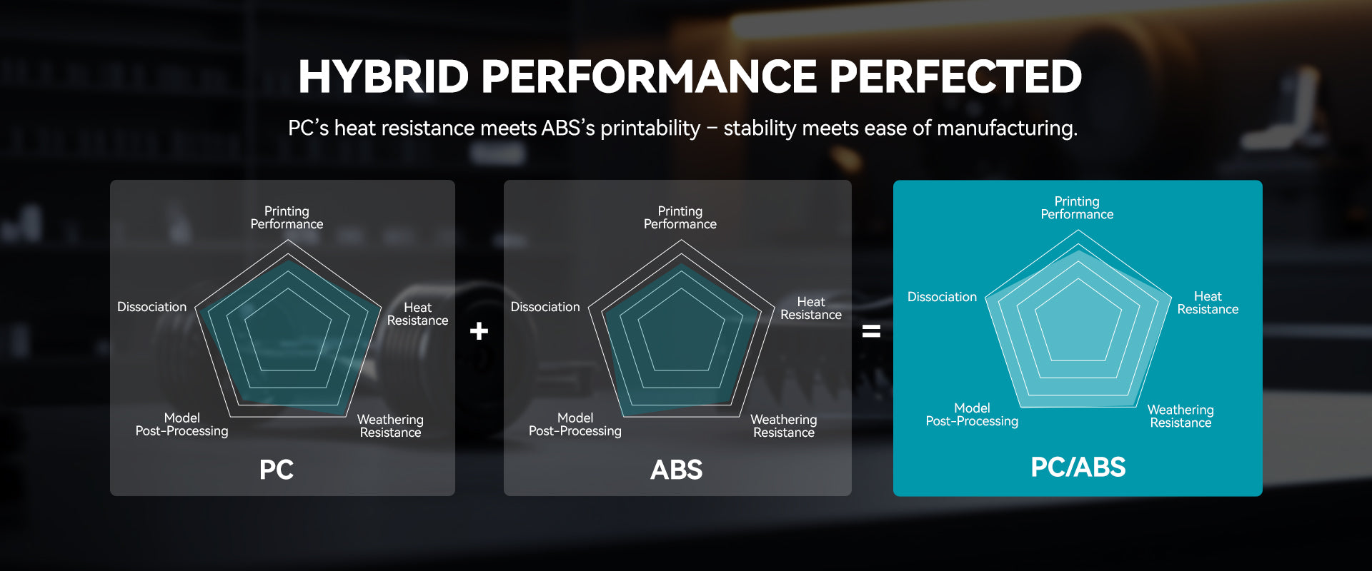 Please note that PC-ABS is industrial engineering filament that need a high printing temperature and chamber Temperature(about 90˚C~100˚C), make sure of your printer's suitability before purchasing.