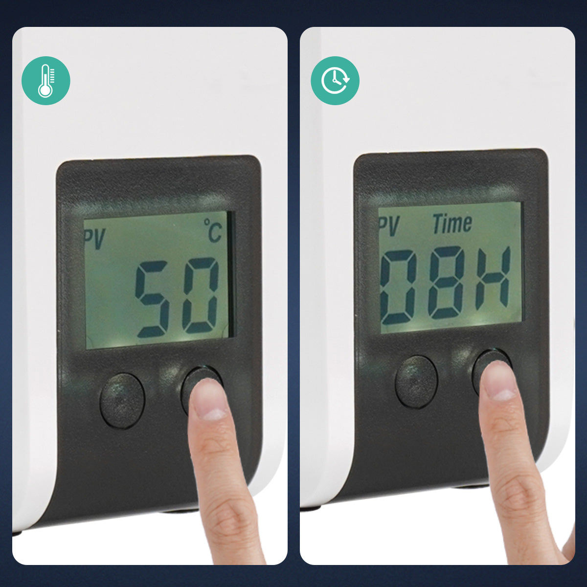 [Personalized Drying Time Setting] The default continuous drying time of the drying box is 6 hours, and you can also manually set the drying time. The time setting range is 0~24 hours. Commonly used 3D filament on the market under normal circumstances only need 3-6 hours of drying to achieve a good printing experience and printing effect.