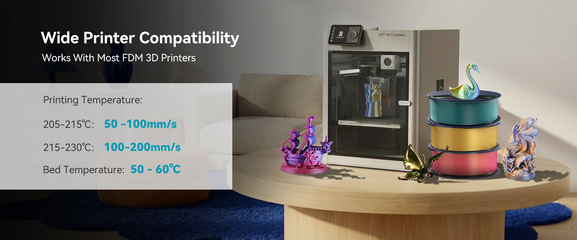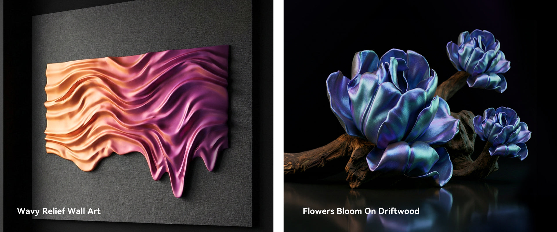 Silky Texture, Smooth Finish: The Silk 3D filament delivers a silky, smooth texture with vibrant, eye-catching colors. Its dazzling surface requires no polishing, making every creation radiate artistic brilliance.