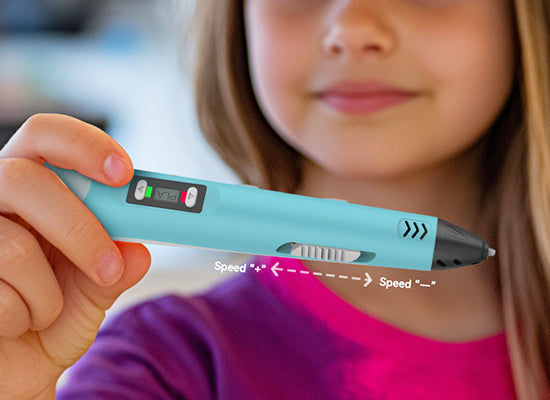 The pen is designed with multiple buttons for easy and intuitive handling. It also includes a front cover with a knob, making maintenance and filament replacement quick and hassle-free. Speed control is made more precise with an adjustable slider, giving you fine-tuned command over your drawing pace.