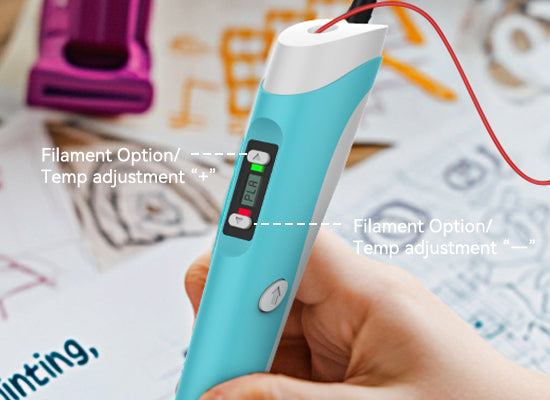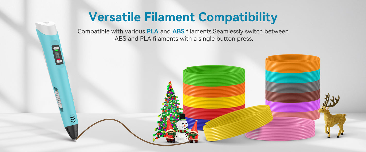 This 3D printing pen is compatible with both PLA and ABS filaments (1.75Β±0.02mm). Switch between different materials effortlessly with a one-press material swap feature for diverse creative projects. Recommended temperature settings are ABS: 180-210β, and PLA: 160-180β.