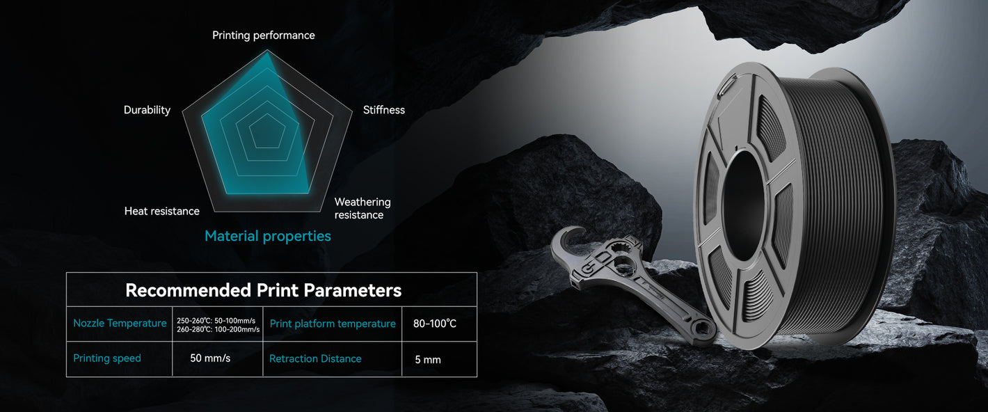 [Recommended Print Setting] Nozzle print temperature: 250-260℃, Print platform temperature: 80-100℃, Printing speed: 40-60mm/s, Retraction distance: 5mm, Retraction speed: 50mm/s. Compatible with most FDM 3D printers that can use a 1.75 mm 3D printer filament.