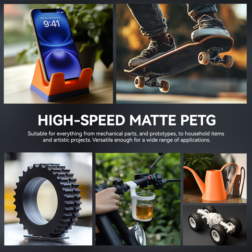 [Durability and Strength] Designed to withstand the demands of functional prototypes and end-use parts, PETG combines durability with flexibility. It's resistant to impact, wear, and various chemicals, making it ideal for industrial, mechanical, and DIY projects.