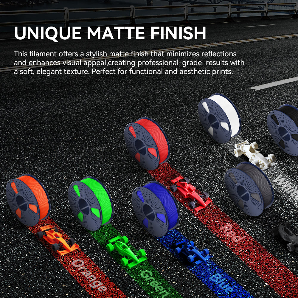 [Unique Matte Finish] This filament offers a stylish matte finish that minimizes reflections and enhances visual appeal, creating professional-grade results with a soft, elegant texture. Perfect for functional and aesthetic prints.