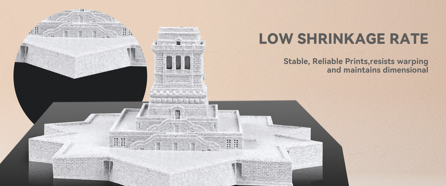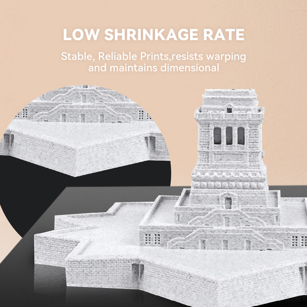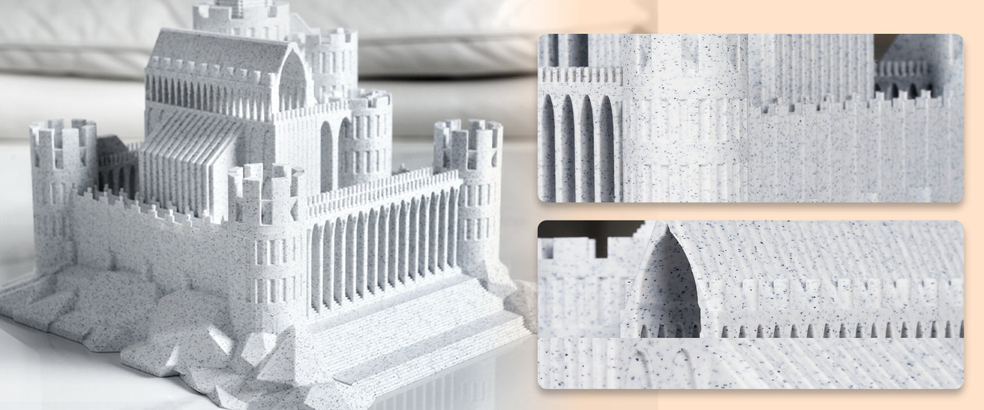 SUNLU High Speed PLA Marble Filament designed with low shrinkage to prevent warping, making it ideal for printing large architectural models with precision.