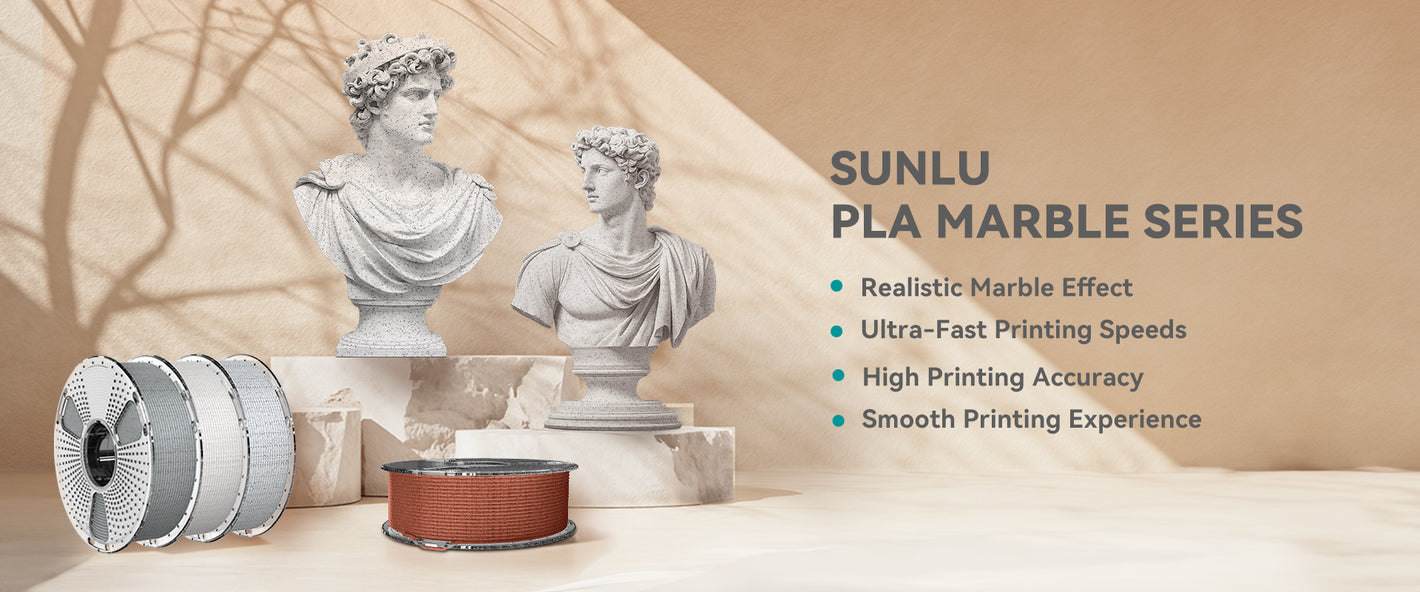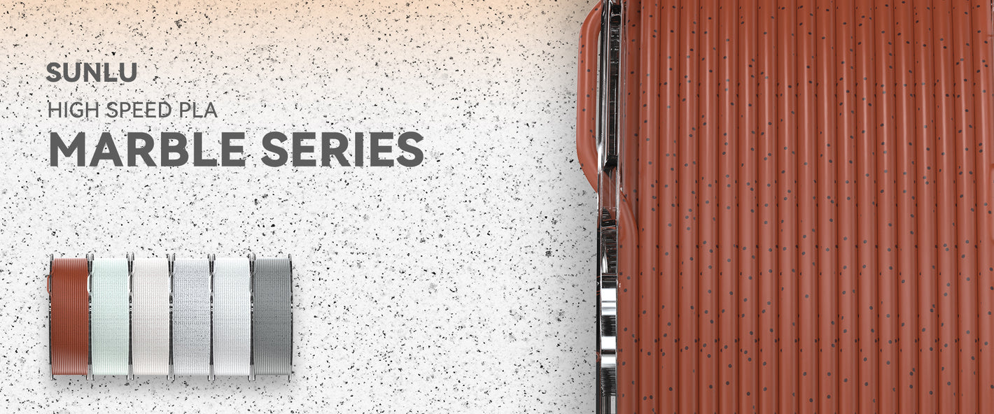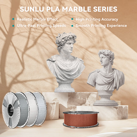 SUNLU High Speed PLA Marble Filament, mimics natural stone and building materials, perfect for creating aesthetic, high-speed 3D prints. Ideal for architectural models, sculptures, and artistic creations with unique textures.