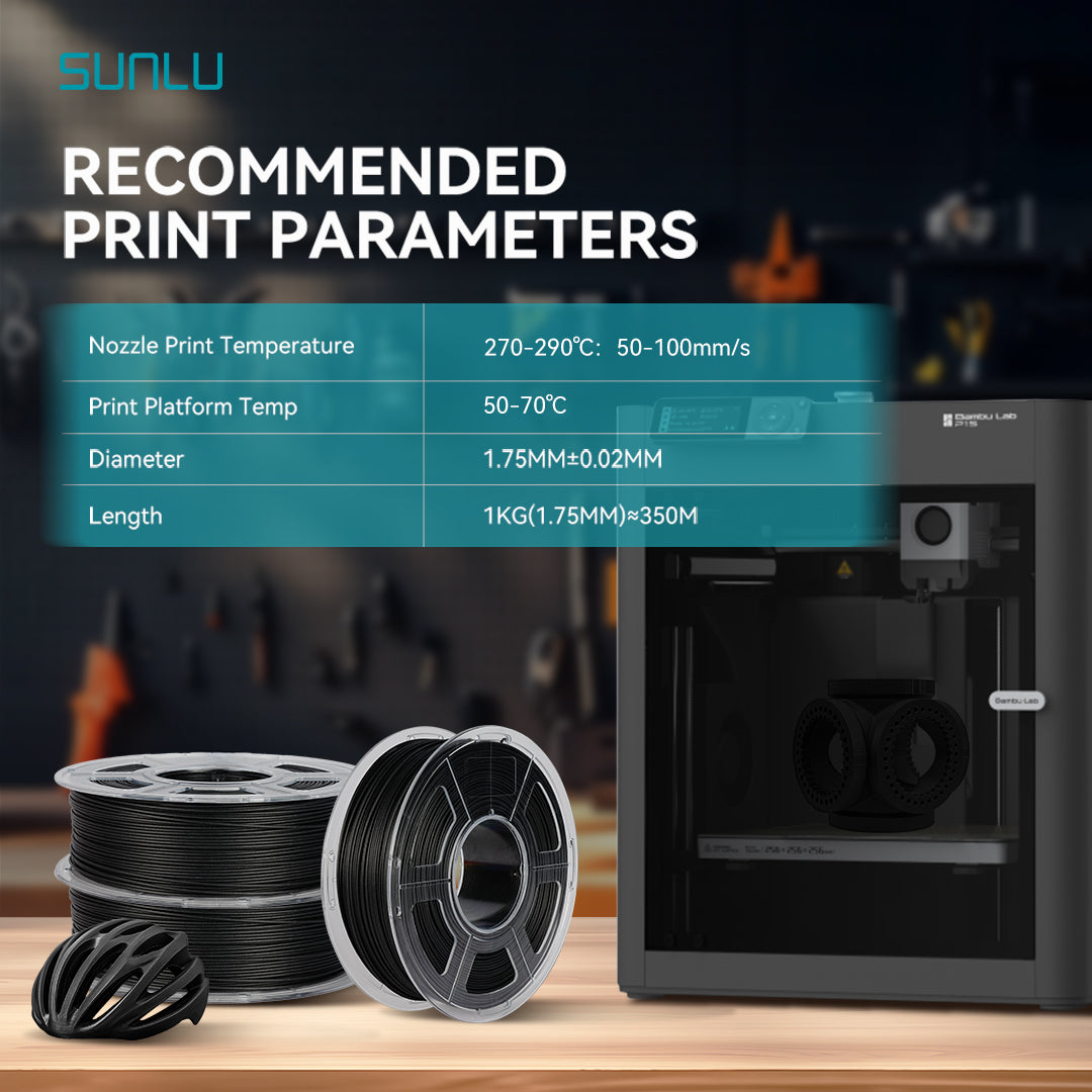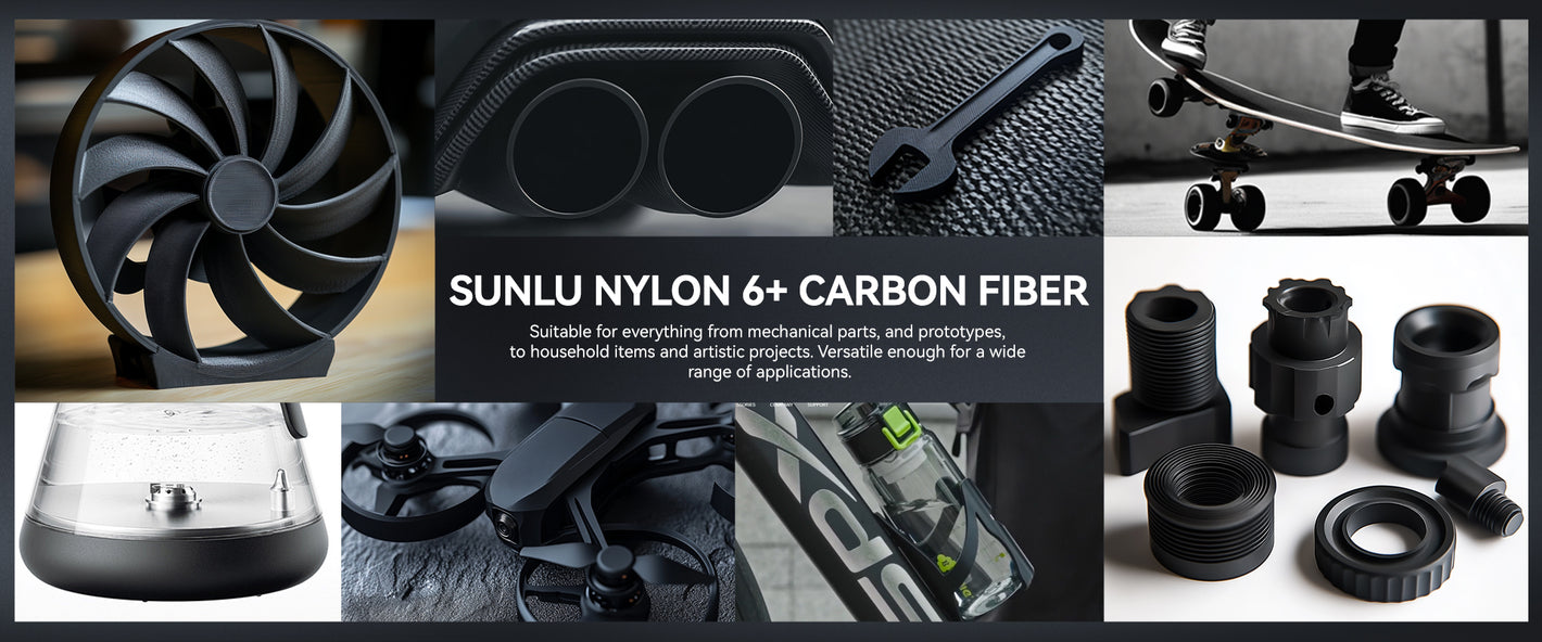 [Perfect for Industrial Engineering] Engineered for strength and durability, SUNLU PA6-CF filament is suitable for industrial uses that require high torsional, tensile, and impact resistance. Ideal applications include gears, screws, helmets, fan blades, toy car chassis, skateboard parts, and bicycle frames.