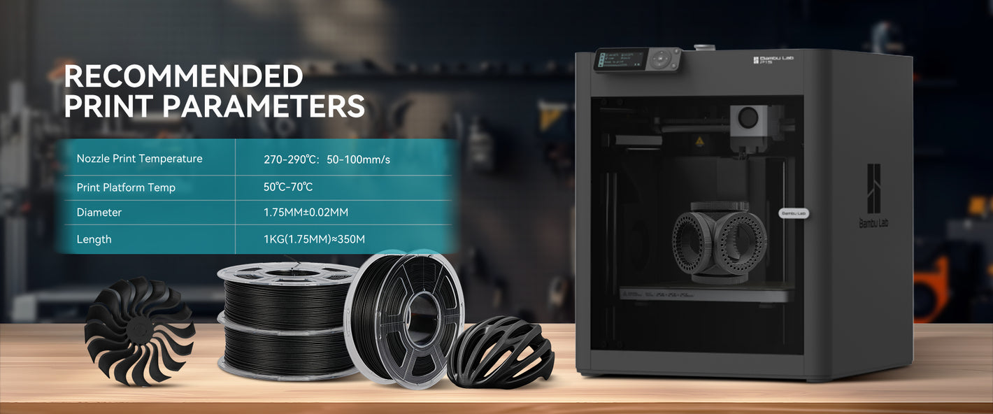 2. Use an abrasion-resistant nozzle (e.g., hardened steel) to prevent wear caused by the filament's carbon fiber content.