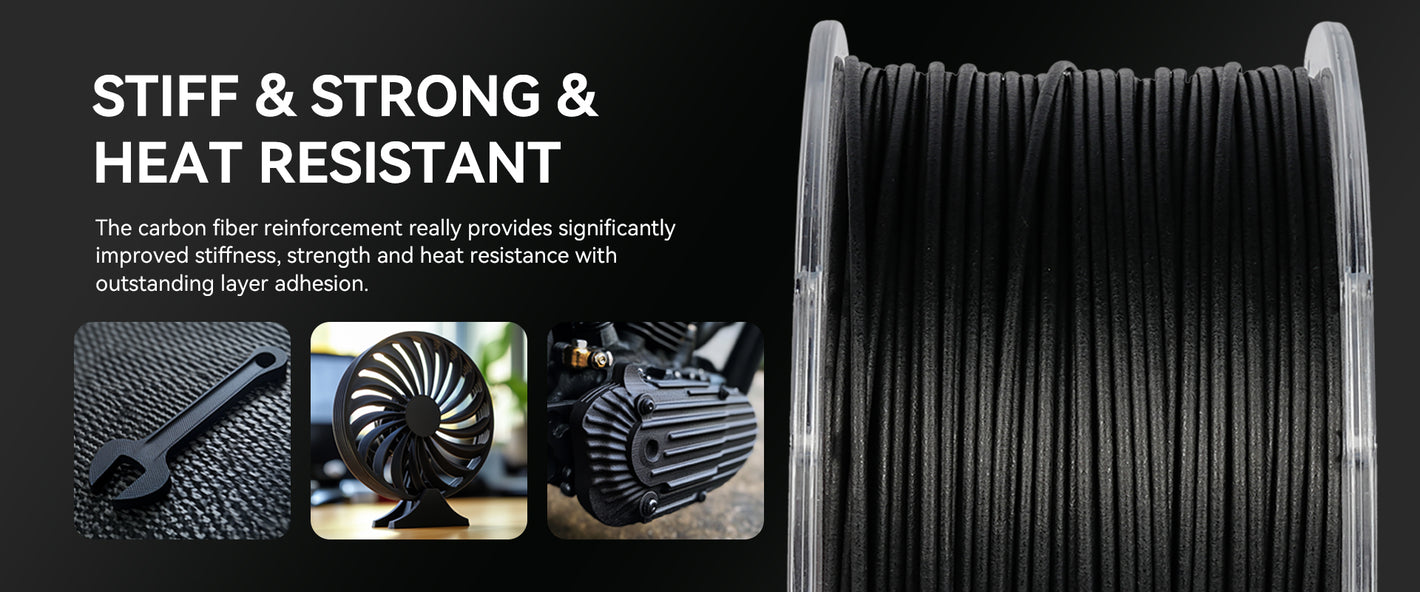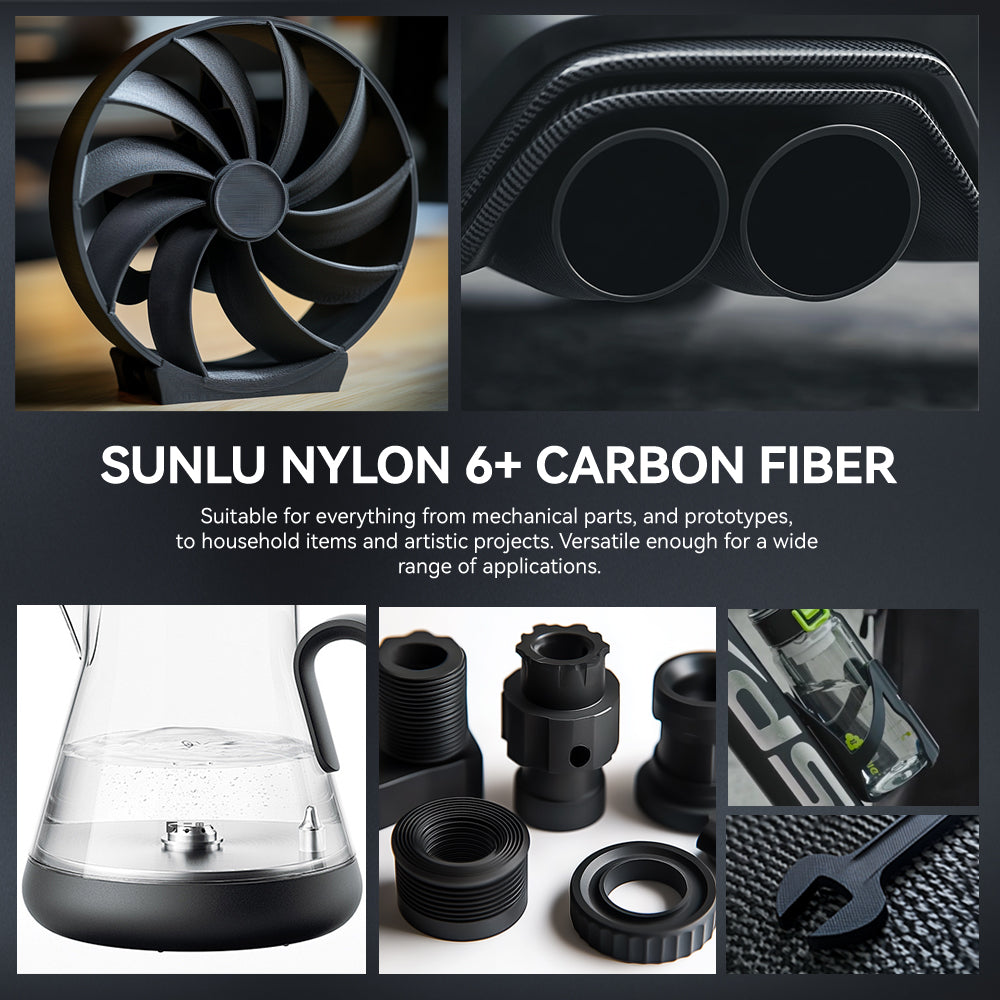 [High Strength & Heat Resistance] SUNLU PA6-CF nylon filament combines 80% PA with 20% carbon fiber, delivering remarkable stiffness, strength, and heat resistance. It offers excellent layer adhesion, making it ideal for demanding applications.