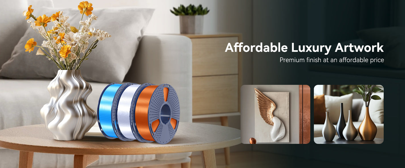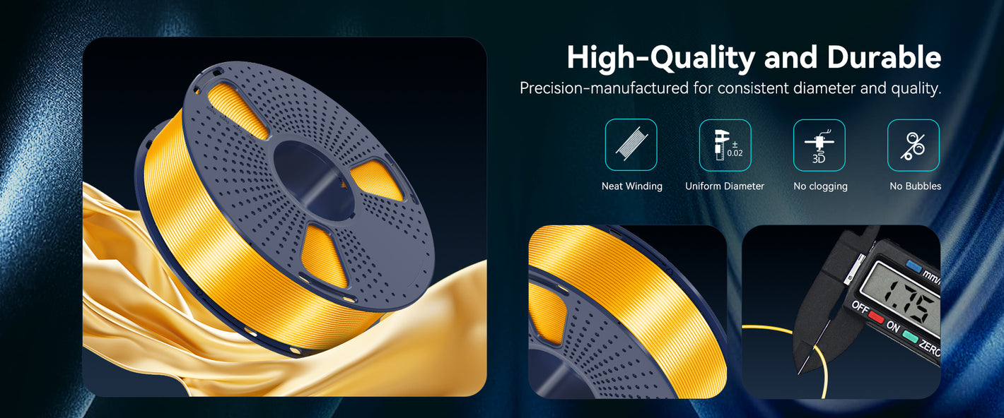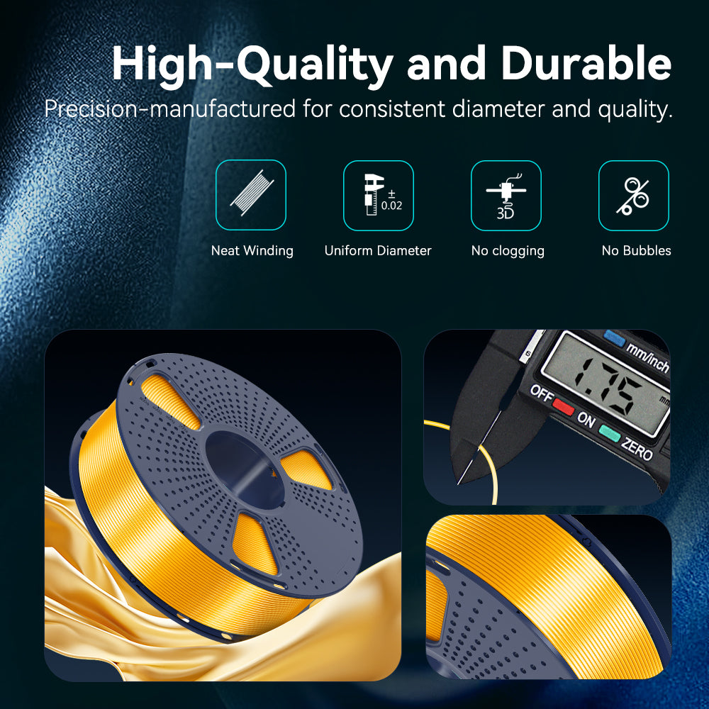 [SUNLU Shiny SILK PLA+ Filament] SUNLU SILK PLA PLUS filament offers a stunning, glossy finish that outshines standard PLA PLUS. Its smooth, silky surface requires no post-print polishing, making it perfect for artistic and craft projects. This filament adds a luxurious sheen to any 3D print, elevating your creations with a brilliant silk-like appearance.