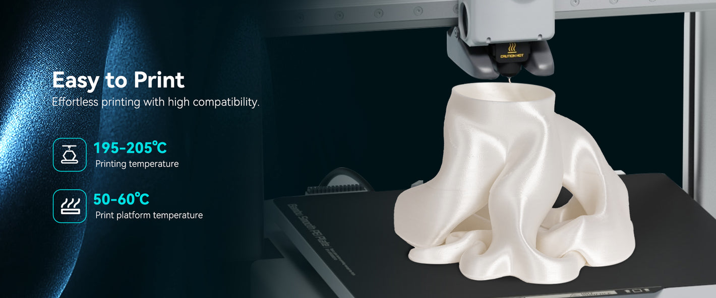 [Optimal Print Settings] SUNLU SILK PLA PLUS filament is engineered for easy 3D printing with optimal quality. Featuring high purity, low shrinkage, and excellent interlayer adhesion, it delivers superior performance. Recommended printing temperatures are 205-215℃ at 50-100mm/s, and 215-235℃ at 100-200mm/s, with a heated bed temperature of 50-60°C.