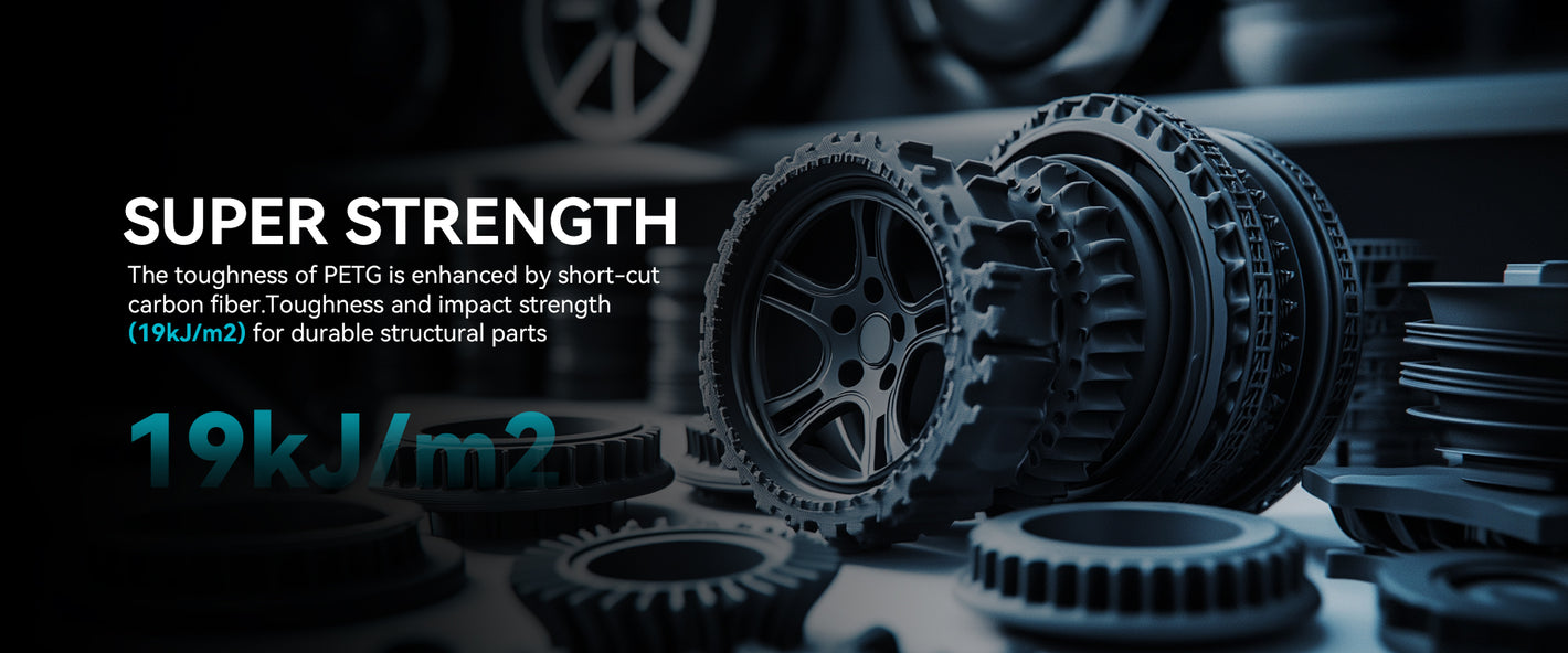 [Enhanced Mechanical Properties] The carbon fiber reinforcement significantly boosts PETG's toughness, achieving an impressive impact strength of 19 kJ/㎡. This ensures printed models are durable, resistant to cracking, and ideal for demanding applications.