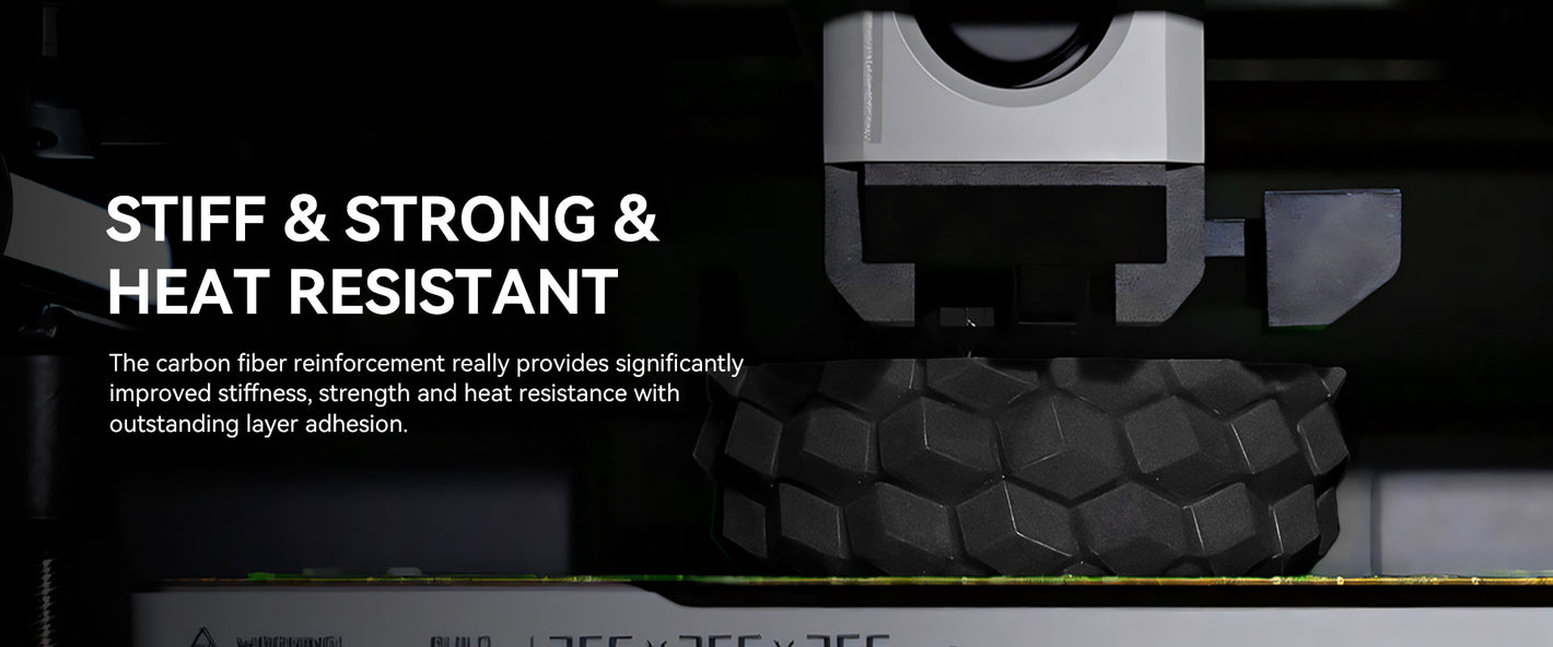 [High Heat Resistance] With a heat distortion temperature reaching 70°C, PETG-CF offers enhanced material strength and thermal stability, while retaining the impact resistance that PETG is known for.