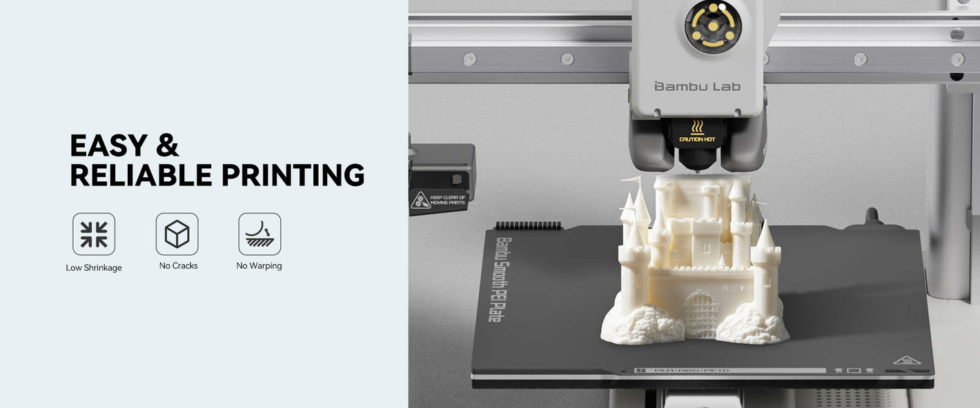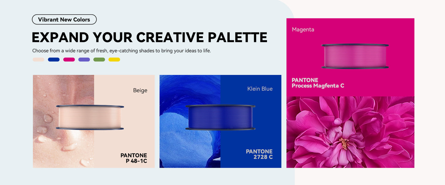 PLA Meta is an upgraded version of PLA, with lower printing temperature, better toughness and softer colors.