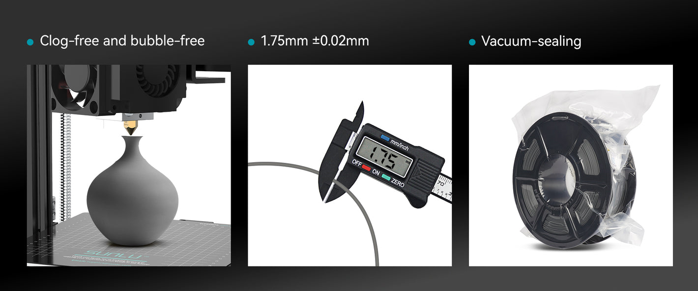 We keep PLA filament dry by air tight packaging, avoid moisture absorption of the filament, so that each roll of filament arrives in the user's hands in perfect condition, SUNLU filament quality is consistent.