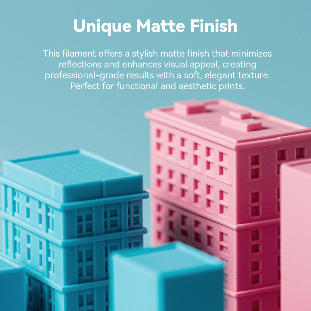 【High-Speed Printing with No Stringing】Say goodbye to stringing issues with our Fast Matte PLA. Specifically engineered for high-speed printing, this filament ensures a clean, neat finish with no unwanted strings, giving you perfectly smooth and detailed prints every time.