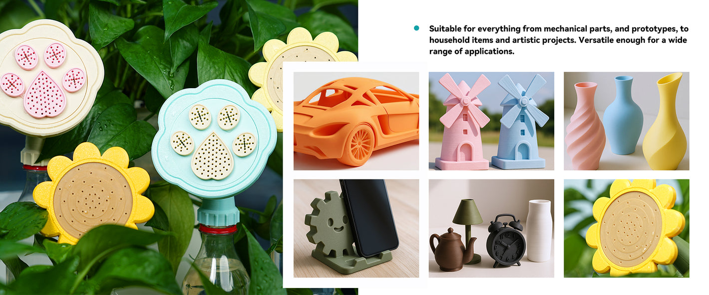 PLA is the most commonly used 3D printing material, it is economically and begainner-friendly with rich colors.