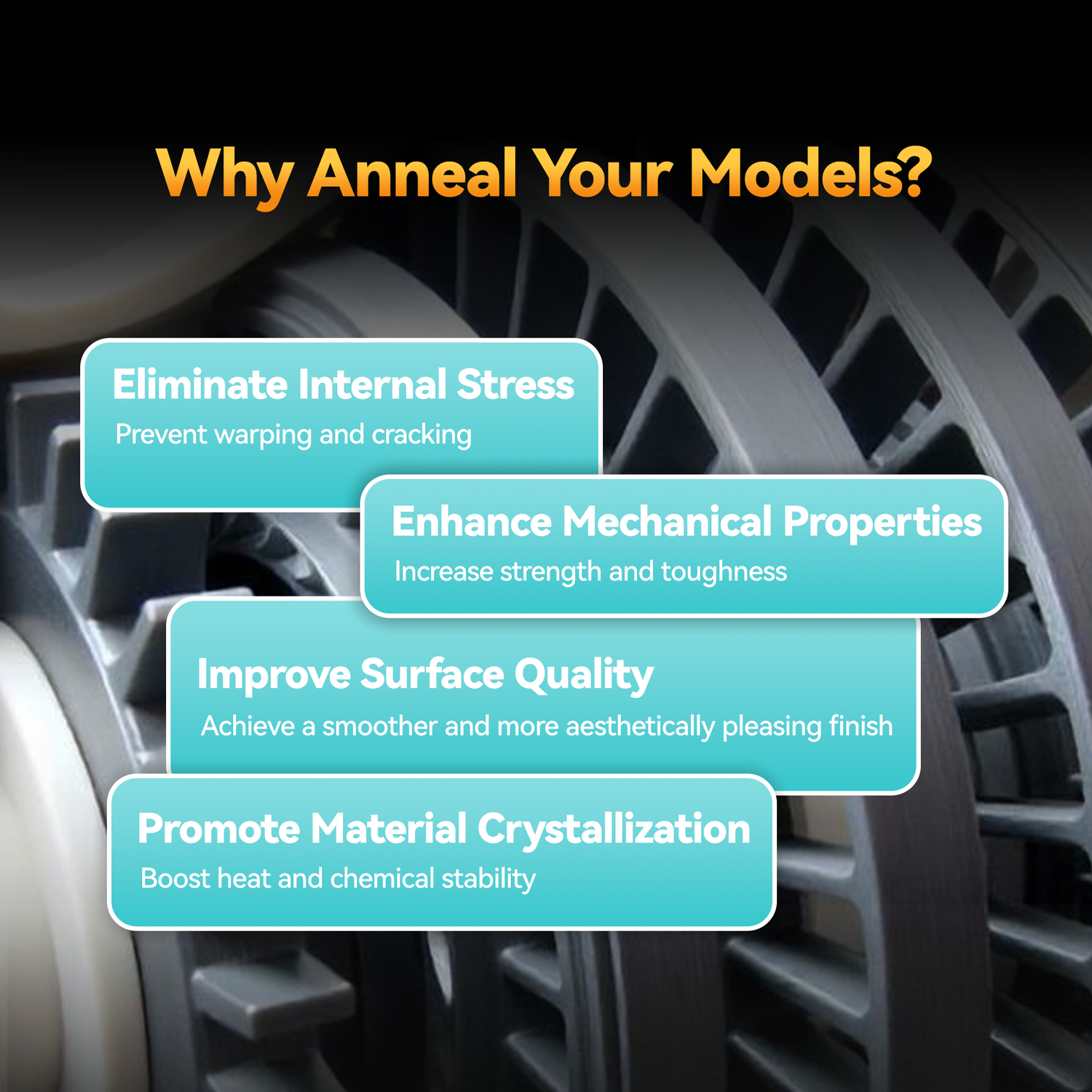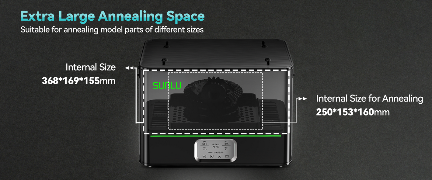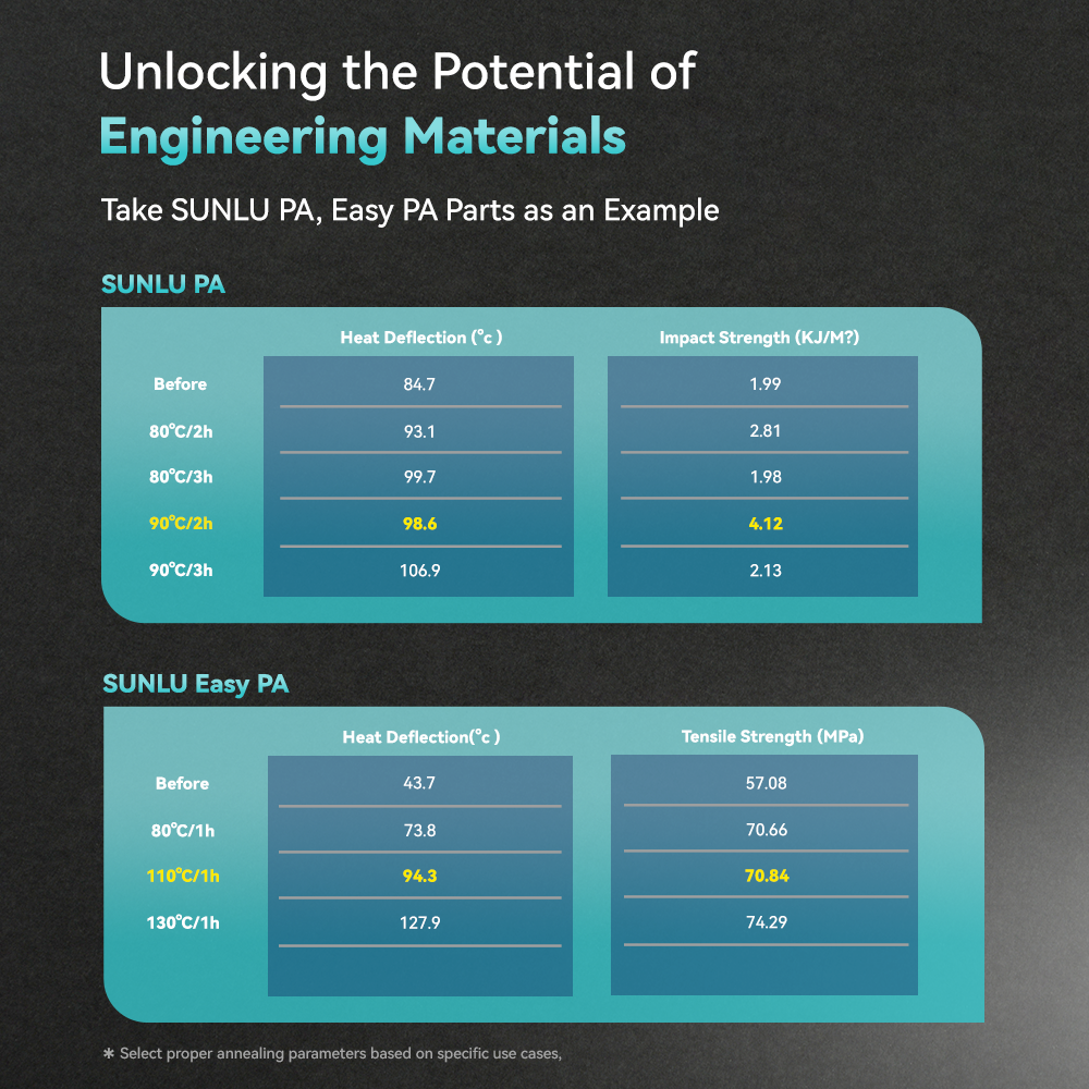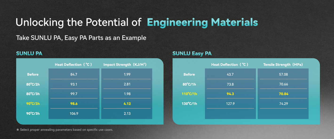 [Superior and Efficient Annealing] Up to 110°C, it can anneal 99.99% of engineering materials on the market, allowing the materials to fulfill their potential and giving your model excellent properties such as extraordinary impact resistance and toughness. Suitable for such as ABS, ABS-CF, ASA, PC, flame retardant PC, PC-ABS, PC-PBT, CoPA, PA6-GF, PA6-CF, PA12-CF, PA612-CF, PA12 etc...