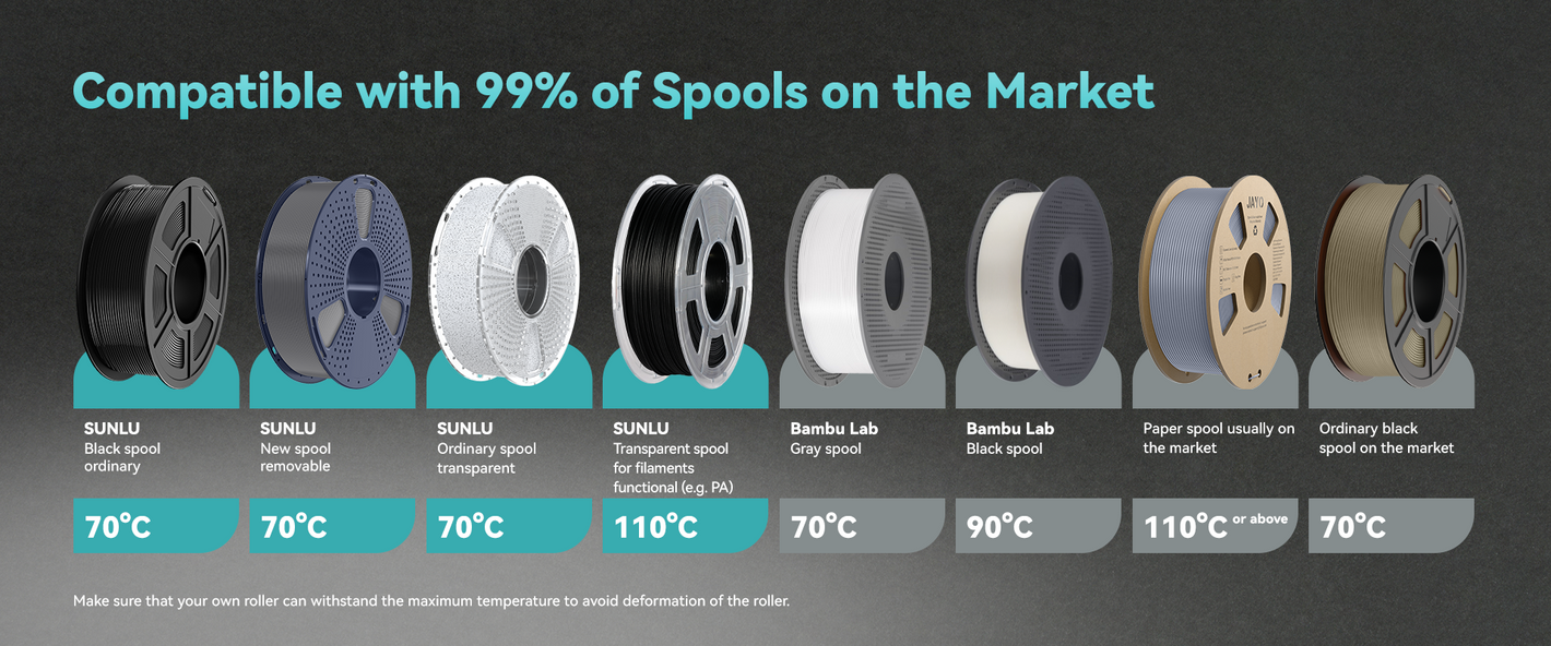 The maximum size of the wire spool that can be accommodated (take SUNLU's spools for example)