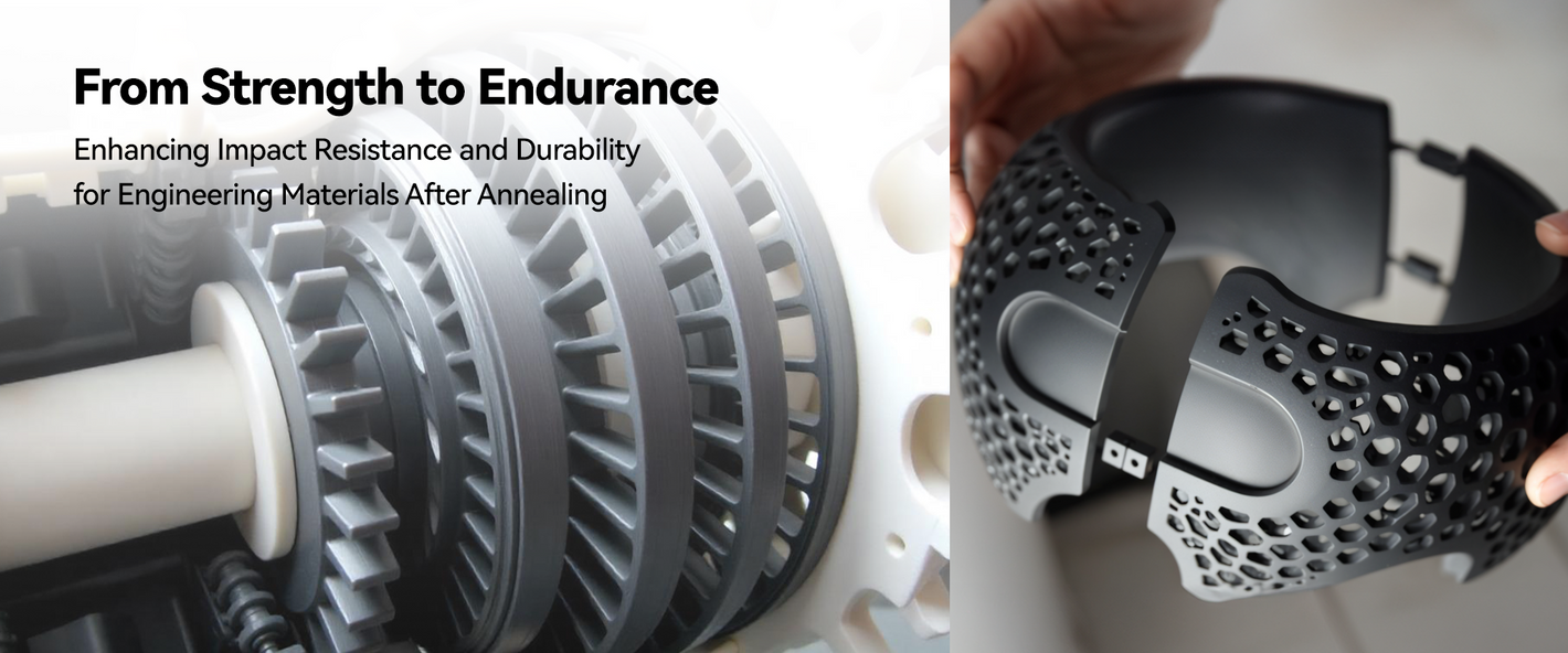 [Inspire Engineering Material Potential] Annealing significantly enhances the impact resistance and durability of engineering materials, allowing you to unlock engineering-grade performance in every creation, which can be applied to: drone accessories, helmets, screws and nuts, blower pipes, etc. Models that need to withstand high-intensity impact and durability.