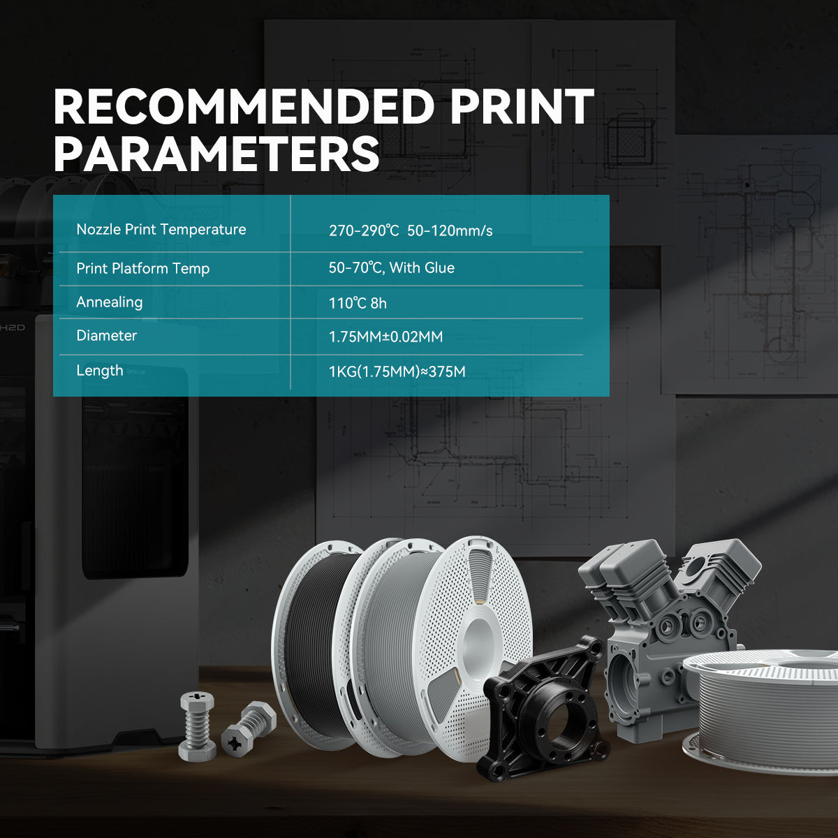 [Redefine Performance Applications] This robust, ultra-durable 1.75mm filament offers exceptional toughness. Ideal for aerospace seat components, high-stress automotive brackets (headlights), drone motor mounts, and heavy-duty agricultural fittings.